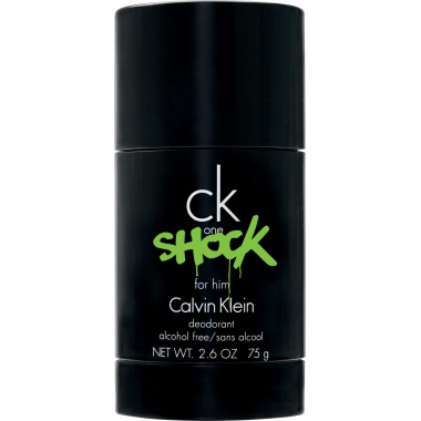 Shock Off! cK one shock for him opens with pure freshness, the heart pulses with spice and finishes with a masculine tobacco musk. Experience ck one shock, the newest fragrance from Calvin Klein with this 2.6 oz Deodorant.
